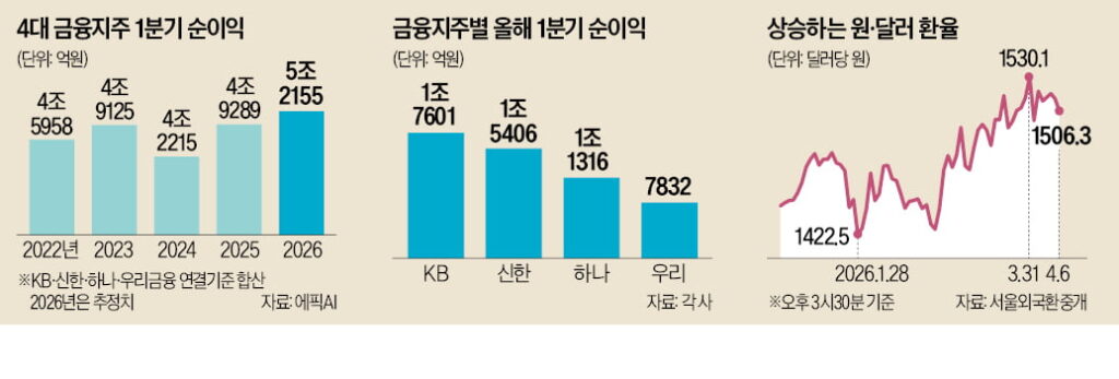 - 은행이 많이 버는 이유: 이자이익(예대 금리차) + 증시 호황으로 비이자이익 급증. 대출 규모 자체가 늘어난 영향이 큼.